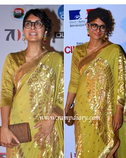 Kiran Rao attended Mumbai Film Festival 2014 where she attended the event wearing possibly a yellow raw mango sari. Though I am not a fan of such kind of sari but Kiran Rao looked fine in the whole outfit and has kept her style statement look intact. What say? Like or Dislike? 🙂