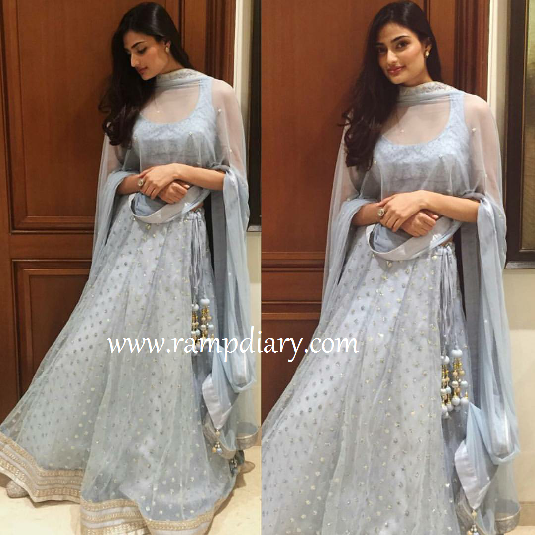 For recently held Diwali celebrations, Athiya opted to wear a lehenga choli by Anita Dongre. With wearing her hair down and mild makeup, actress looked simple and elegant in this festive look.