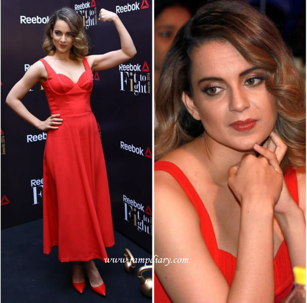 Celeb Fashion, Fashion · December 20, 2016Kangana Ranaut In Ulyana Sergeenko During a recent Reebok Fit to Fight event, Kangana Ranaut opted for a red dress by Ulyana Sergeenko where she went for an open hair look and wore matching red pumps and red lip shade. She looked fine in this red look. What say? Like? Kangana Ranaut In Ulyana Sergeenko