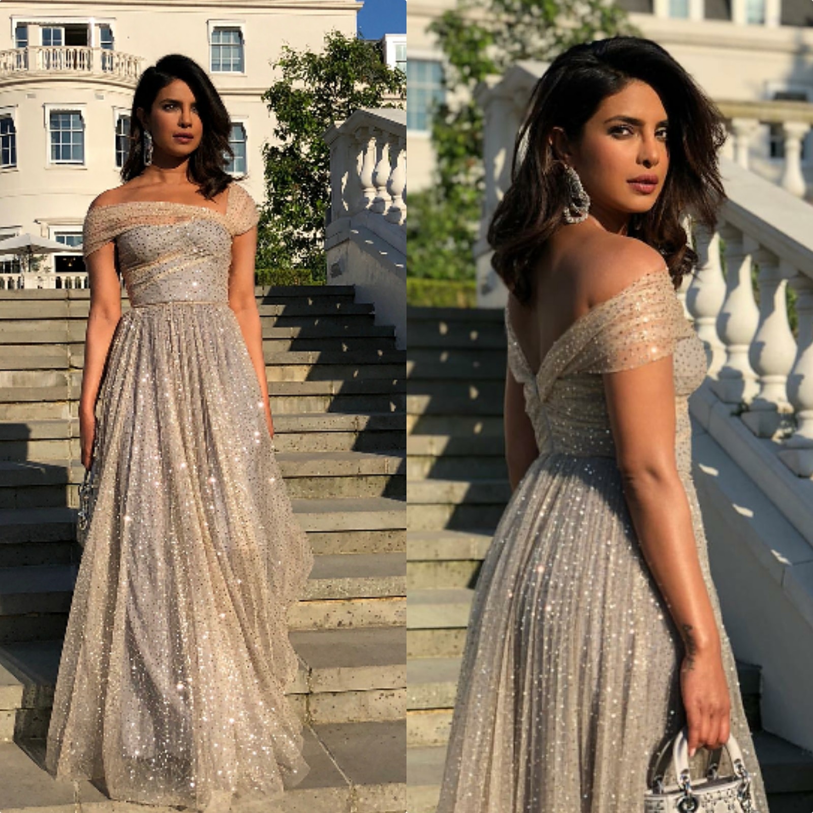 Celeb Fashion, Fashion · May 23, 2018Priyanka Chopra in Dior Priyanka Chopra wore a gown by Dior for a Royal Wedding after party event. Priyanka carried a handbag with long earrings and went for open messed up hair look. Priyanka looked classy in this look! What say? Like or Not?