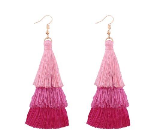 This pair of Tassel drop layered earring can go very well with any look! Be it a party look or a beach look! These earrings are a must have for every girl who loves pink color.