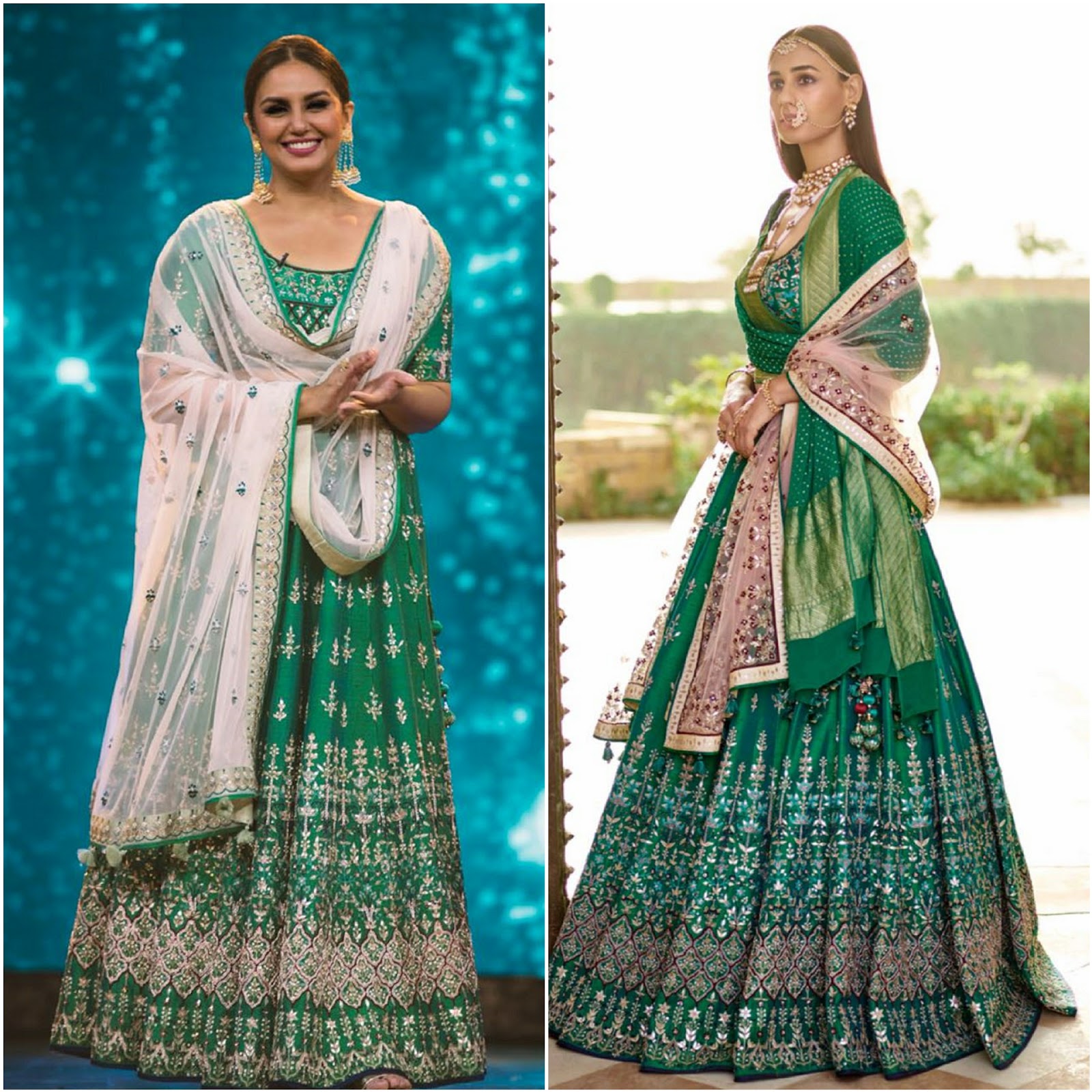 For tapping a recent TV show, Huma Qureshi picked up an ethnic wear by designer Anita Dongre. Long earrings and a hair updo finished off her look! Huma looked elegant in this green and white look! Isn’t she?