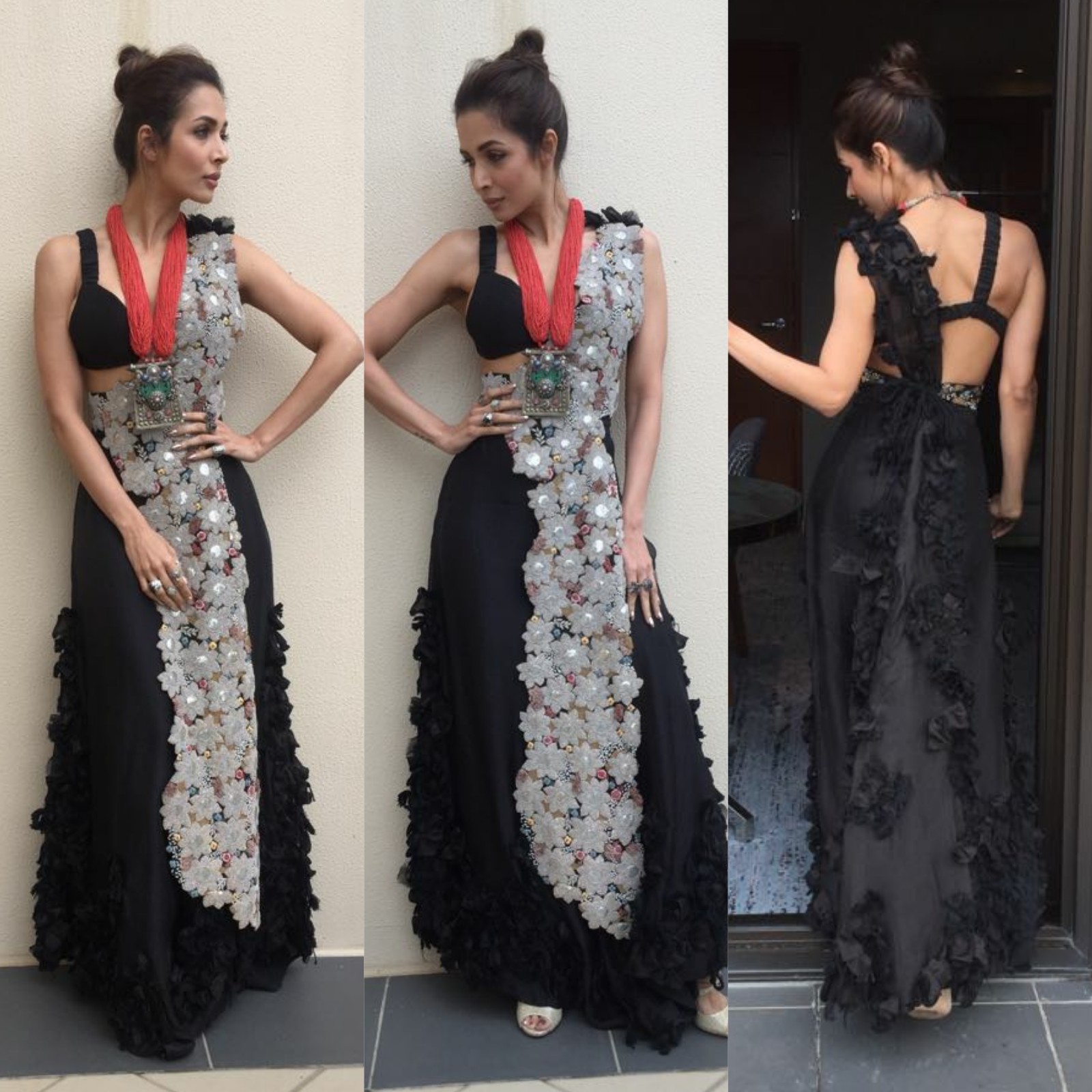 Malaika Arora Khan picked up an outfit by Anamika Khanna at IIFM at Melborne. An hair updo, mild makeup and a statement necklace finished off her look. Malaika looked stunning in this sari. What do you think? Like or Not?