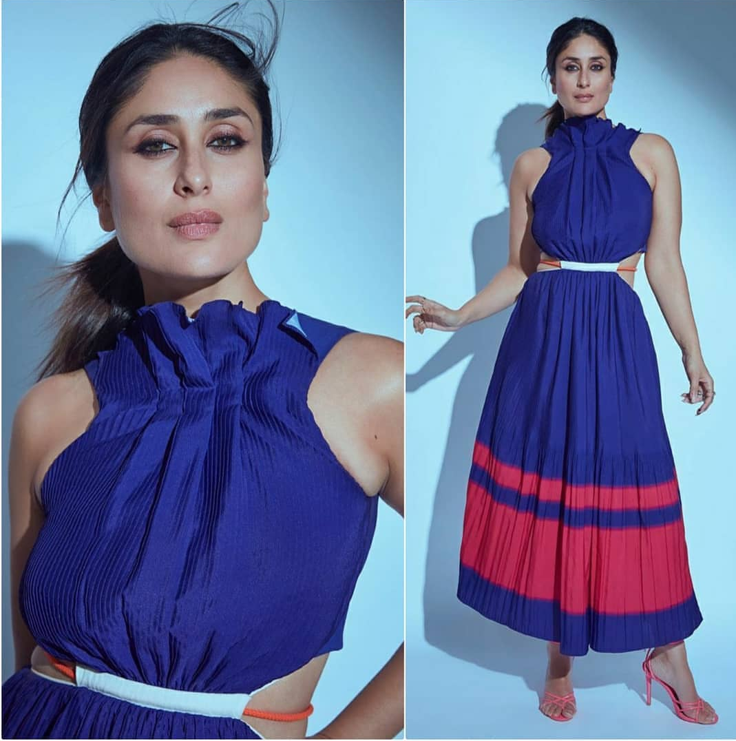 Recently Bollywood actor Kareena Kapoor wore a blue and red dress by designer Prabal Gurung for a Radio Show. Her shoes were from Miss Guided. Do you like her in this look?